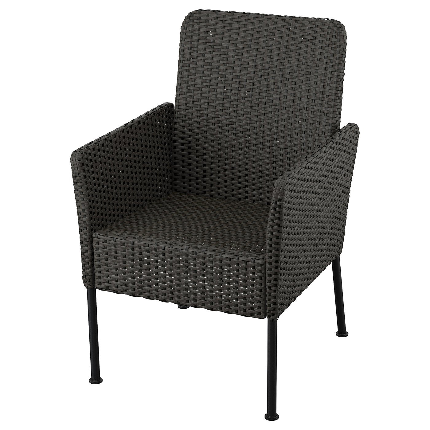 VITTSKÄR chair with armrests, plastic rattan outdoor/dark grey, 50x95x64 cm