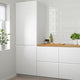 VOXTORP fronts with matte white surface create a modern look and give the impression of light and space. Integrated handles blend perfectly into the design enhancing the minimalist expression.