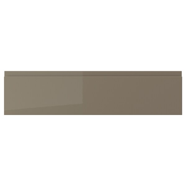 VOXTORP drawer front with high gloss, dark grey-brown finish creates a modern look that feels sleek and elegant. Spills and stains wipe off easily and the integrated handle blends perfectly into the design.